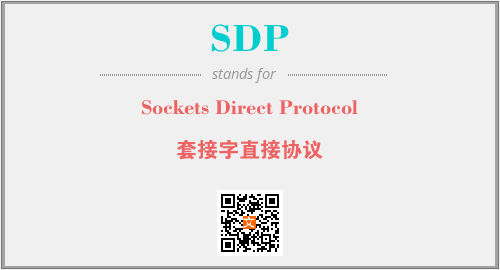 英文缩略词“SDP”经常作为“Sockets Direct Protocol”的英文缩写来使用,中文表示:“套接字直接协议”。本文将详细介绍英文缩写词SDP所代表英文单词,其对应的中文拼音、详细解释以及在英语中的流行度。此外,还有关于缩略词SDP的分类、应用领域及相关应用示例等。