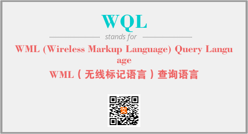 英文缩略词“WQL”经常作为“WML (Wireless Markup Language) Query Language”的英文缩写来使用,中文表示:“WML(无线标记语言)查询语言”。本文将详细介绍英文缩写词WQL所代表英文单词,其对应的中文拼音、详细解释以及在英语中的流行度。此外,还有关于缩略词WQL的分类、应用领域及相关应用示例等。