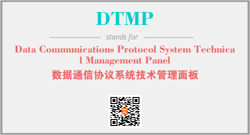 英文缩略词“DTMP”经常作为“Data Communications Protocol System Technical Management Panel”的英文缩写来使用,中文表示:“数据通信协议系统技术管理面板”。本文将详细介绍英文缩写词DTMP所代表英文单词,其对应的中文拼音、详细解释以及在英语中的流行度。此外,还有关于缩略词DTMP的分类、应用领域及相关应用示例等。