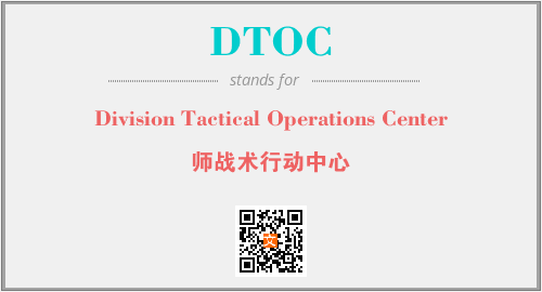 英文缩略词“DTOC”经常作为“Division Tactical Operations Center”的英文缩写来使用,中文表示:“师战术行动中心”。本文将详细介绍英文缩写词DTOC所代表英文单词,其对应的中文拼音、详细解释以及在英语中的流行度。此外,还有关于缩略词DTOC的分类、应用领域及相关应用示例等。