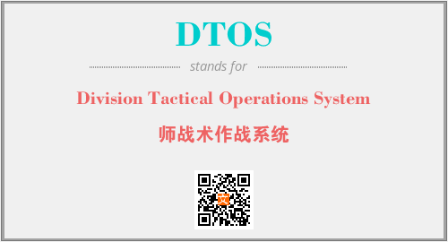 英文缩略词“DTOS”经常作为“Division Tactical Operations System”的英文缩写来使用,中文表示:“师战术作战系统”。本文将详细介绍英文缩写词DTOS所代表英文单词,其对应的中文拼音、详细解释以及在英语中的流行度。此外,还有关于缩略词DTOS的分类、应用领域及相关应用示例等。