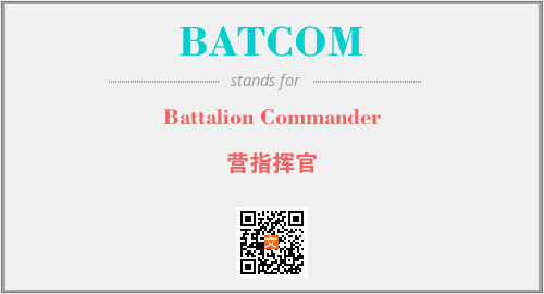 英文缩略词“BATCOM”经常作为“Battalion Commander”的英文缩写来使用,中文表示:“营指挥官”。本文将详细介绍英文缩写词BATCOM所代表英文单词,其对应的中文拼音、详细解释以及在英语中的流行度。此外,还有关于缩略词BATCOM的分类、应用领域及相关应用示例等。