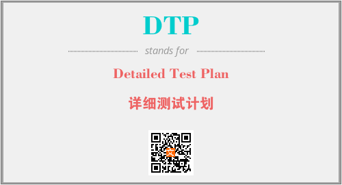 英文缩略词“DTP”经常作为“Detailed Test Plan”的英文缩写来使用,中文表示:“详细测试计划”。本文将详细介绍英文缩写词DTP所代表英文单词,其对应的中文拼音、详细解释以及在英语中的流行度。此外,还有关于缩略词DTP的分类、应用领域及相关应用示例等。