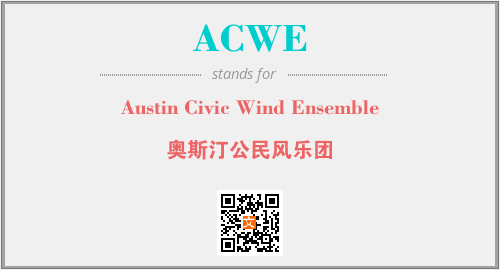 英文缩略词“ACWE”经常作为“Austin Civic Wind Ensemble”的英文缩写来使用,中文表示:“奥斯汀公民风乐团”。本文将详细介绍英文缩写词ACWE所代表英文单词,其对应的中文拼音、详细解释以及在英语中的流行度。此外,还有关于缩略词ACWE的分类、应用领域及相关应用示例等。