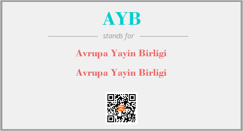 以上为Avrupa Yayin Birligi英文缩略词AYB的中文解释,以及该英文缩写在英语的流行度、分类和应用领域方面的信息。