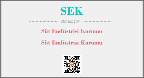 上述内容是“Süt Endüstrisi Kurumu”作为“SEK”的缩写,解释为“Süt Endüstrisi Kurumu”时的信息,以及英文缩略词SEK所代表的英文单词,其对应的中文拼音、详细解释以及在英文中的流行度和相关分类、应用领域及应用示例等。