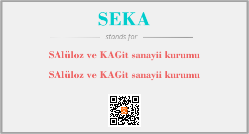 以上为SAlüloz ve KAGit sanayii kurumu英文缩略词SEKA的中文解释,以及该英文缩写在英语的流行度、分类和应用领域方面的信息。
