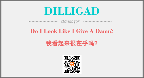 以上为Do I Look Like I Give A Damn?英文缩略词DILLIGAD的中文解释,以及该英文缩写在英语的流行度、分类和应用领域方面的信息。