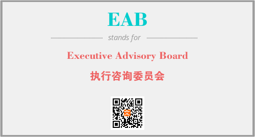 以上为Executive Advisory Board英文缩略词EAB的中文解释,以及该英文缩写在英语的流行度、分类和应用领域方面的信息。