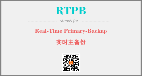 英文缩略词“RTPB”经常作为“Real-Time Primary-Backup”的英文缩写来使用,中文表示:“实时主备份”。本文将详细介绍英文缩写词RTPB所代表英文单词,其对应的中文拼音、详细解释以及在英语中的流行度。此外,还有关于缩略词RTPB的分类、应用领域及相关应用示例等。