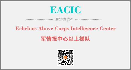 上述内容是“Echelons Above Corps Intelligence Center”作为“EACIC”的缩写,解释为“军情报中心以上梯队”时的信息,以及英文缩略词EACIC所代表的英文单词,其对应的中文拼音、详细解释以及在英文中的流行度和相关分类、应用领域及应用示例等。