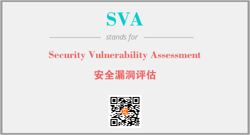上述内容是“Security Vulnerability Assessment”作为“SVA”的缩写,解释为“安全漏洞评估”时的信息,以及英文缩略词SVA所代表的英文单词,其对应的中文拼音、详细解释以及在英文中的流行度和相关分类、应用领域及应用示例等。