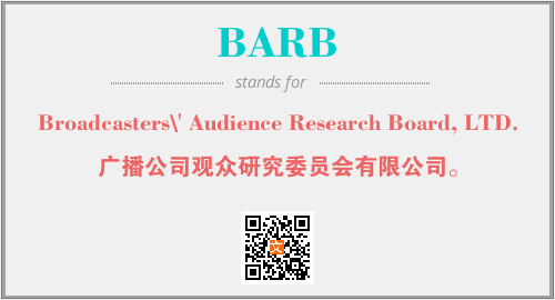 上述内容是“Broadcasters\' Audience Research Board, LTD.”作为“BARB”的缩写,解释为“广播公司观众研究委员会有限公司。”时的信息,以及英文缩略词BARB所代表的英文单词,其对应的中文拼音、详细解释以及在英文中的流行度和相关分类、应用领域及应用示例等。
