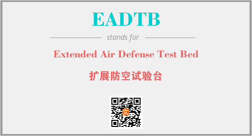 英文缩略词“EADTB”经常作为“Extended Air Defense Test Bed”的英文缩写来使用,中文表示:“扩展防空试验台”。本文将详细介绍英文缩写词EADTB所代表英文单词,其对应的中文拼音、详细解释以及在英语中的流行度。此外,还有关于缩略词EADTB的分类、应用领域及相关应用示例等。