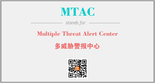 上述内容是“Multiple Threat Alert Center”作为“MTAC”的缩写,解释为“多威胁警报中心”时的信息,以及英文缩略词MTAC所代表的英文单词,其对应的中文拼音、详细解释以及在英文中的流行度和相关分类、应用领域及应用示例等。