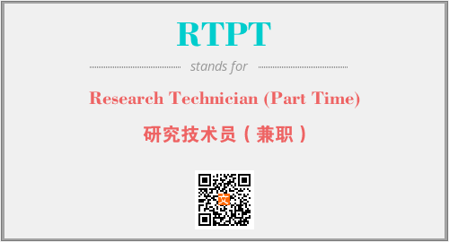 上述内容是“Research Technician (Part Time)”作为“RTPT”的缩写,解释为“研究技术员(兼职)”时的信息,以及英文缩略词RTPT所代表的英文单词,其对应的中文拼音、详细解释以及在英文中的流行度和相关分类、应用领域及应用示例等。