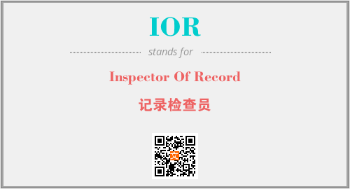 上述内容是“Inspector Of Record”作为“IOR”的缩写,解释为“记录检查员”时的信息,以及英文缩略词IOR所代表的英文单词,其对应的中文拼音、详细解释以及在英文中的流行度和相关分类、应用领域及应用示例等。