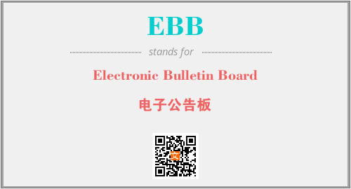 英文缩略词“EBB”经常作为“Electronic Bulletin Board”的英文缩写来使用,中文表示:“电子公告板”。本文将详细介绍英文缩写词EBB所代表英文单词,其对应的中文拼音、详细解释以及在英语中的流行度。此外,还有关于缩略词EBB的分类、应用领域及相关应用示例等。