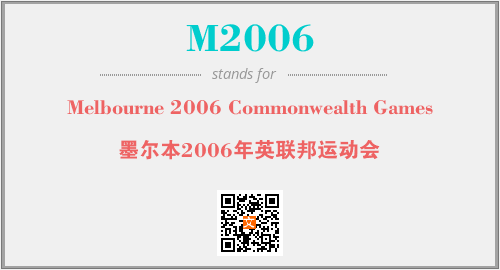 上述内容是“Melbourne 2006 Commonwealth Games”作为“M2006”的缩写,解释为“墨尔本2006年英联邦运动会”时的信息,以及英文缩略词M2006所代表的英文单词,其对应的中文拼音、详细解释以及在英文中的流行度和相关分类、应用领域及应用示例等。