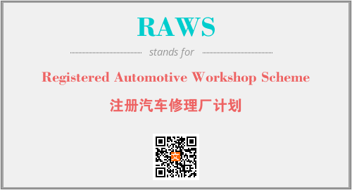英文缩略词“RAWS”经常作为“Registered Automotive Workshop Scheme”的英文缩写来使用,中文表示:“注册汽车修理厂计划”。本文将详细介绍英文缩写词RAWS所代表英文单词,其对应的中文拼音、详细解释以及在英语中的流行度。此外,还有关于缩略词RAWS的分类、应用领域及相关应用示例等。