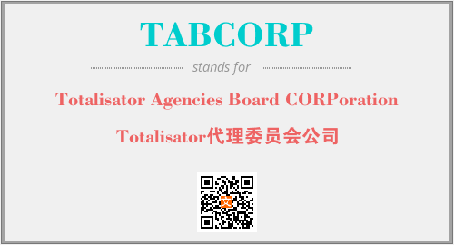 上述内容是“Totalisator Agencies Board CORPoration”作为“TABCORP”的缩写,解释为“Totalisator代理委员会公司”时的信息,以及英文缩略词TABCORP所代表的英文单词,其对应的中文拼音、详细解释以及在英文中的流行度和相关分类、应用领域及应用示例等。