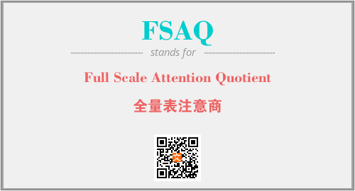 上述内容是“Full Scale Attention Quotient”作为“FSAQ”的缩写,解释为“全量表注意商”时的信息,以及英文缩略词FSAQ所代表的英文单词,其对应的中文拼音、详细解释以及在英文中的流行度和相关分类、应用领域及应用示例等。