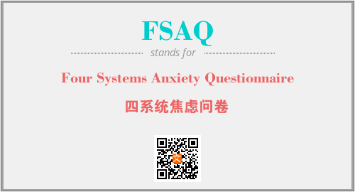 上述内容是“Four Systems Anxiety Questionnaire”作为“FSAQ”的缩写,解释为“四系统焦虑问卷”时的信息,以及英文缩略词FSAQ所代表的英文单词,其对应的中文拼音、详细解释以及在英文中的流行度和相关分类、应用领域及应用示例等。