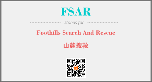 上述内容是“Foothills Search And Rescue”作为“FSAR”的缩写,解释为“山麓搜救”时的信息,以及英文缩略词FSAR所代表的英文单词,其对应的中文拼音、详细解释以及在英文中的流行度和相关分类、应用领域及应用示例等。