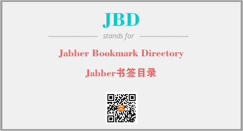 上述内容是“Jabber Bookmark Directory”作为“JBD”的缩写,解释为“Jabber书签目录”时的信息,以及英文缩略词JBD所代表的英文单词,其对应的中文拼音、详细解释以及在英文中的流行度和相关分类、应用领域及应用示例等。