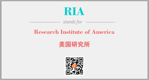 英文缩略词“RIA”经常作为“Research Institute of America”的英文缩写来使用,中文表示:“美国研究所”。本文将详细介绍英文缩写词RIA所代表英文单词,其对应的中文拼音、详细解释以及在英语中的流行度。此外,还有关于缩略词RIA的分类、应用领域及相关应用示例等。