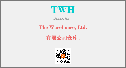英文缩略词“TWH”经常作为“The Warehouse, Ltd.”的英文缩写来使用,中文表示:“有限公司仓库。”。本文将详细介绍英文缩写词TWH所代表英文单词,其对应的中文拼音、详细解释以及在英语中的流行度。此外,还有关于缩略词TWH的分类、应用领域及相关应用示例等。
