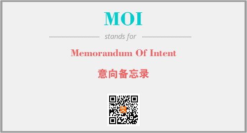 上述内容是“Memorandum Of Intent”作为“MOI”的缩写,解释为“意向备忘录”时的信息,以及英文缩略词MOI所代表的英文单词,其对应的中文拼音、详细解释以及在英文中的流行度和相关分类、应用领域及应用示例等。