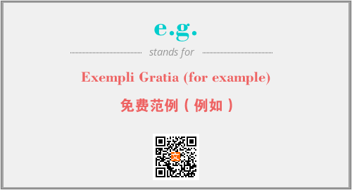 上述内容是“Exempli Gratia (for example)”作为“e.g.”的缩写,解释为“免费范例(例如)”时的信息,以及英文缩略词e.g.所代表的英文单词,其对应的中文拼音、详细解释以及在英文中的流行度和相关分类、应用领域及应用示例等。