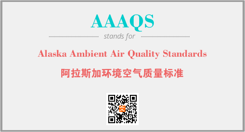 英文缩略词“AAAQS”经常作为“Alaska Ambient Air Quality Standards”的英文缩写来使用,中文表示:“阿拉斯加环境空气质量标准”。本文将详细介绍英文缩写词AAAQS所代表英文单词,其对应的中文拼音、详细解释以及在英语中的流行度。此外,还有关于缩略词AAAQS的分类、应用领域及相关应用示例等。