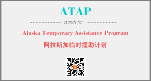 英文缩略词“ATAP”经常作为“Alaska Temporary Assistance Program”的英文缩写来使用,中文表示:“阿拉斯加临时援助计划”。本文将详细介绍英文缩写词ATAP所代表英文单词,其对应的中文拼音、详细解释以及在英语中的流行度。此外,还有关于缩略词ATAP的分类、应用领域及相关应用示例等。