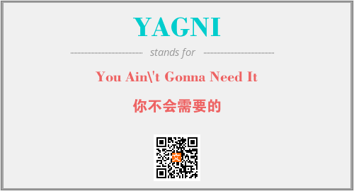 英文缩略词“YAGNI”经常作为“You Ain\'t Gonna Need It”的英文缩写来使用,中文表示:“你不会需要的”。本文将详细介绍英文缩写词YAGNI所代表英文单词,其对应的中文拼音、详细解释以及在英语中的流行度。此外,还有关于缩略词YAGNI的分类、应用领域及相关应用示例等。