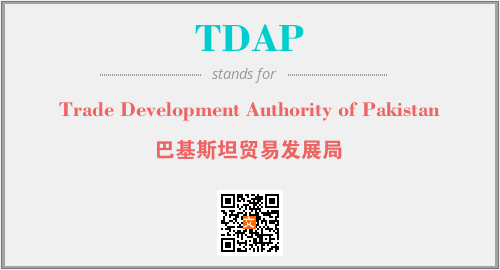 上述内容是“Trade Development Authority of Pakistan”作为“TDAP”的缩写,解释为“巴基斯坦贸易发展局”时的信息,以及英文缩略词TDAP所代表的英文单词,其对应的中文拼音、详细解释以及在英文中的流行度和相关分类、应用领域及应用示例等。