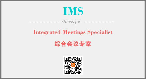 英文缩略词“IMS”经常作为“Integrated Meetings Specialist”的英文缩写来使用,中文表示:“综合会议专家”。本文将详细介绍英文缩写词IMS所代表英文单词,其对应的中文拼音、详细解释以及在英语中的流行度。此外,还有关于缩略词IMS的分类、应用领域及相关应用示例等。