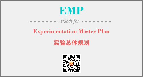 英文缩略词“EMP”经常作为“Experimentation Master Plan”的英文缩写来使用,中文表示:“实验总体规划”。本文将详细介绍英文缩写词EMP所代表英文单词,其对应的中文拼音、详细解释以及在英语中的流行度。此外,还有关于缩略词EMP的分类、应用领域及相关应用示例等。