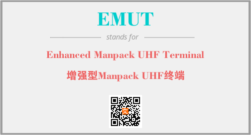 英文缩略词“EMUT”经常作为“Enhanced Manpack UHF Terminal”的英文缩写来使用,中文表示:“增强型Manpack UHF终端”。本文将详细介绍英文缩写词EMUT所代表英文单词,其对应的中文拼音、详细解释以及在英语中的流行度。此外,还有关于缩略词EMUT的分类、应用领域及相关应用示例等。