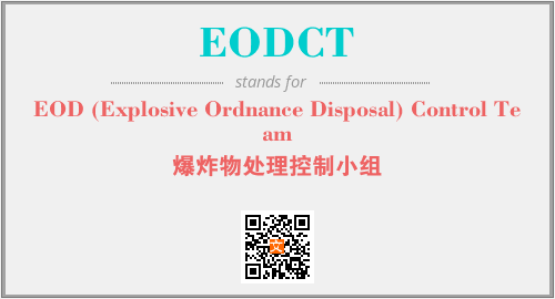 上述内容是“EOD (Explosive Ordnance Disposal) Control Team”作为“EODCT”的缩写,解释为“爆炸物处理控制小组”时的信息,以及英文缩略词EODCT所代表的英文单词,其对应的中文拼音、详细解释以及在英文中的流行度和相关分类、应用领域及应用示例等。