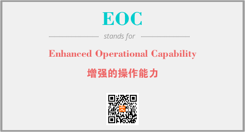 英文缩略词“EOC”经常作为“Enhanced Operational Capability”的英文缩写来使用,中文表示:“增强的操作能力”。本文将详细介绍英文缩写词EOC所代表英文单词,其对应的中文拼音、详细解释以及在英语中的流行度。此外,还有关于缩略词EOC的分类、应用领域及相关应用示例等。
