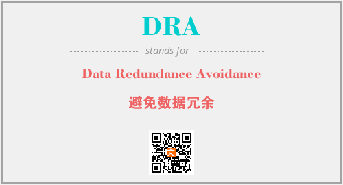 上述内容是“Data Redundance Avoidance”作为“DRA”的缩写,解释为“避免数据冗余”时的信息,以及英文缩略词DRA所代表的英文单词,其对应的中文拼音、详细解释以及在英文中的流行度和相关分类、应用领域及应用示例等。