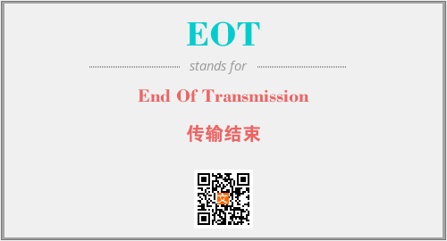 英文缩略词“EOT”经常作为“End Of Transmission”的英文缩写来使用,中文表示:“传输结束”。本文将详细介绍英文缩写词EOT所代表英文单词,其对应的中文拼音、详细解释以及在英语中的流行度。此外,还有关于缩略词EOT的分类、应用领域及相关应用示例等。