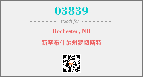 上述内容是“Rochester, NH”作为“03839”的缩写,解释为“新罕布什尔州罗切斯特”时的信息,以及英文缩略词03839所代表的英文单词,其对应的中文拼音、详细解释以及在英文中的流行度和相关分类、应用领域及应用示例等。