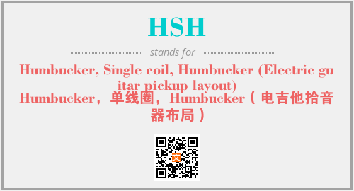 英文缩略词“HSH”经常作为“Humbucker, Single coil, Humbucker (Electric guitar pickup layout)”的英文缩写来使用,中文表示:“Humbucker,单线圈,Humbucker(电吉他拾音器布局)”。本文将详细介绍英文缩写词HSH所代表英文单词,其对应的中文拼音、详细解释以及在英语中的流行度。此外,还有关于缩略词HSH的分类、应用领域及相关应用示例等。
