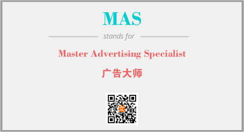 上述内容是“Master Advertising Specialist”作为“MAS”的缩写,解释为“广告大师”时的信息,以及英文缩略词MAS所代表的英文单词,其对应的中文拼音、详细解释以及在英文中的流行度和相关分类、应用领域及应用示例等。