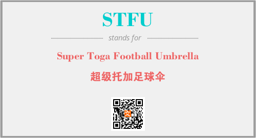 上述内容是“Super Toga Football Umbrella”作为“STFU”的缩写,解释为“超级托加足球伞”时的信息,以及英文缩略词STFU所代表的英文单词,其对应的中文拼音、详细解释以及在英文中的流行度和相关分类、应用领域及应用示例等。