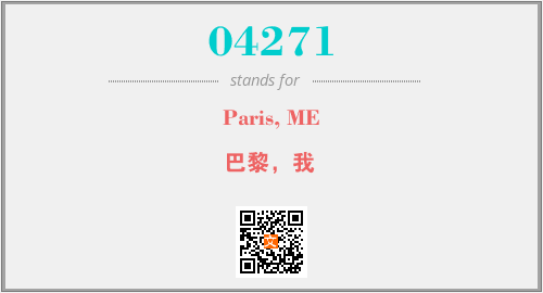 上述内容是“Paris, ME”作为“04271”的缩写,解释为“巴黎,我”时的信息,以及英文缩略词04271所代表的英文单词,其对应的中文拼音、详细解释以及在英文中的流行度和相关分类、应用领域及应用示例等。