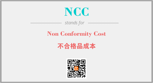 上述内容是“Non Conformity Cost”作为“NCC”的缩写,解释为“不合格品成本”时的信息,以及英文缩略词NCC所代表的英文单词,其对应的中文拼音、详细解释以及在英文中的流行度和相关分类、应用领域及应用示例等。